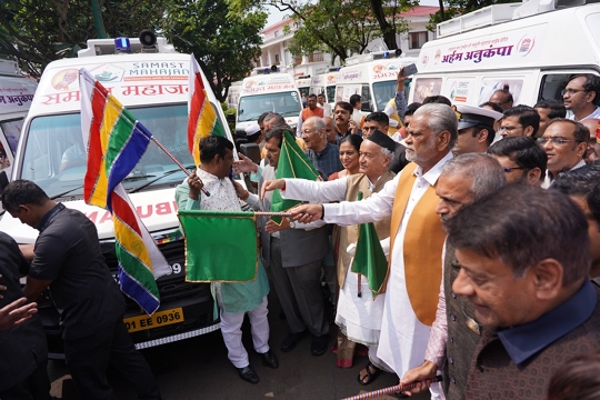 समस्त महाजन ने इस साल फरवरी में पहली बार मुंबई में ‘एनिमल हॉस्पिटल ओन व्हील्स’ की अनोखी सुविधा से बीमार घायल मूक जीवो को चिकित्सा सेवा देने के मामले में अद्भुद उदाहरण पेश किया. अब ये सेवा और भी असरकारक रूप में ग्यारह नई एम्बुलेंस के साथ पुरे शहर में चोबीस घंटे मिलने वाली है. , माननीय गवर्नर श्री भगत सिंह कोशियारी जी के शुभ हाथो से ११ नई एम्बुलेंस  को ग्रीन झंडी दिखाई गयी , उनका लोकार्पर्ण महाराष्ट्र के माननीय गवर्नर श्री भगत सिंह कोश्यारी जी  के शुभ हाथो से उनके आधिकारिक निवासस्थान राजभवन पर आज सुबह दस बजे हुआ ।