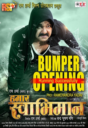 फिल्म की अपार सफलता को लेकर प्रोड्यूसर राम शर्मा (एनआरआई) ने कहा कि ‘हमार स्वाभिमान’ एक सामाजिक और पारिवारिक फिल्म है। इस फिल्म में बहुत कुछ नया दर्शकों को देखने के लिए है। फिल्म की कहानी और पवन सिंह की अदाकारी इसकी यूएसपी है। उस पर अंजना सिंह के साथ पवन सिंह की केमेस्ट्री भी दर्शकों को खूब पसंद आ रही है। हमने इसका निर्माण भव्य पैमाने पर किया है, ताकि एक बेहतरीन भोजपुरी सिनेमा दर्शकों को देखने को मिले। फ़िल्म को बम्पर ओपनिंग देने के लिए सभी को तहेदिल से धन्यवाद देते हुए आभार व्यक्त करता हूँ। आप सभी का प्यार, आशीर्वाद हमेशा बना रहे।