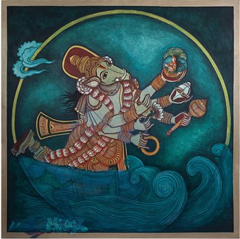 This exhibition is a collection of large format paintings celebrating her beauty, her boon giving and nurturing ability. She also presented Lord Vishnu, god of love, benevolence and forgiveness in the form of ” Varaha” protecting her for the preservation of the universe.
