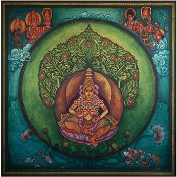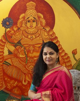 Arpitha an alumnus of JNFAU College of Fine Arts, trained in the temple mural style at Guruvayoor Institute of Mural Paintings. She has experience in numerous traditional art forms including Pata Chitra, Phad, Thangal, Cherial, Tanjore, Kalamkari, and has almost two decades of experience in practicing the murals. Now her works are an adaptation of the Kerala murals after she has given herself freedom to assimilate different traditional art forms into her paintings. She has several awards and honors to her credit. She has exhibited her paintings in major cities of India and Abroad. Recently She represented India in a symposium at Samarkand during the Shanghai cooperative organization summit in September 2022, organized by the ministry of tourism and cultural heritage Uzbekistan.