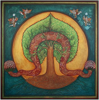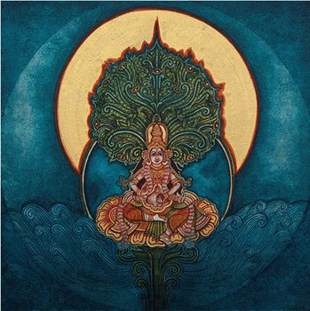 “ Her Vasundhara is a robust bright eyed beauty born of the expression of all that is beautiful, resonant, complete in both devotion as well as dedication to the idea of the eternal tree of life and Vasundhara as an avatar and consort of Lord Vishnu,” says art critic Uma Nair who has authored the sumptuous catalogue.