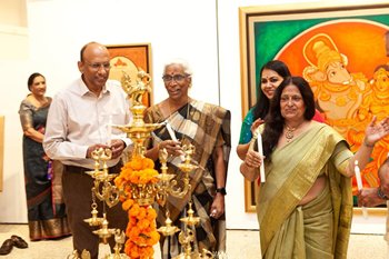 This exhibition was inaugurated on 14th February 2023 by Shri. Prabhakar Kolte and Shri. KU Krishna Kumar, Principal of Institute of Mural painting established by the Guruvayur Devaswom, Kerala, Mrs. K.G. Menon, The Secretary – Jehangir Art Gallery and Ms. Uma Nair Renowned art critic from Delhi in the presence of many other important personalities from the art fraternity.