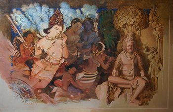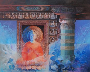 The present series depicts the subtle nuances of the Indian cultural traditions and heritage of the historical monuments, temples, shrines in an expressive and artistic style. He has been deeply inspired by the beauty of Nature and relevance of the historical monuments at various places. He has incorporated the architectural details of various monumental buildings and the surrounding environment of places of historical importance and cultural relevance at Ajanta, Ellora, Pandharpurand many more places in his endeavours. His lucid visual language of expressions incorporates the use of vivid muses, iconic motifs and spiritual extravaganza of sentimental expressions in apt religious and cultural fervours and their sanctity in proper perspectives. He has artistically and aesthetically adorned his works with ethnic and eternal visual effects at the desired arenas in the work in order to lay emphasis on their relevance in the modern materialistic world full of enjoyment & pleasures and that peculiar attitude of the masses. He has demonstrated numerous aspects of the human attachment towards the monuments of historical and cultural significance and the necessity of the desired efforts towards maintaining their sanctity and relevance in the modern era. He has made and displayed paintings on Buddha and other deities like Lord Ganesha, Lord Vishnu, Indra Sabha, Kailash Temple, Mahishasurmardini, etc in his style.