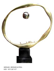 Pradip Mondal: Nature is the main composition of Pradip Mondal’s sculptures. He has BVA and MVA in Modelling and Sculpture from Govt. College of Art & Craft, Calcutta, where he teaches also. His sculptures represent the contouring base lines of nature. The linear metallic compositions are just simple in nature to express the transparency in objects of this phenomenal world.  The lightness of heavy metal compositionally completes the surroundings.