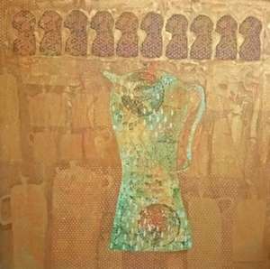 Arun Paul:  Arun Paul got his BVA & MVA degree in Textile Design from Govt. College of Art & Craft, Calcutta, in the year 1997 and 2000. He also teaches there. His works are mostly composed with various forms and colour patches. Motifs and solid type background contrasting the whole construction of his compositions.