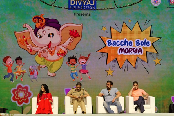 अमृता फडणवीस द्वारा शुरू किये गये दिव्यज फ़ाउंडेशन के भव्य आयोजन ‘बच्चे बोले मोरया’ में सुपरस्टार सलमान ख़ान ने आज वहां इकट्ठा हज़ारों बच्चों को गणेश मूर्तियों के निर्माण के दौरान इको-फ़्रेंडली गणेश वस्तुओं के इस्तेमाल करने की नसीहत दी.